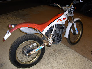話は全然変わりますが、以前従兄弟からHONDA TLM200というトライアルマシーンを頂いたのですが25年位の物で雨ざらし状態。基本的に古い物が好きな自分にとっては何とかしたい気持ちが沸々と・・・。そこでレストアをお願いする事にしたのですが、まー自分からの仕事は面倒なのが多いと嘆くGAREGE OPBの大森君にそんな意見は無視してほぼ強引!